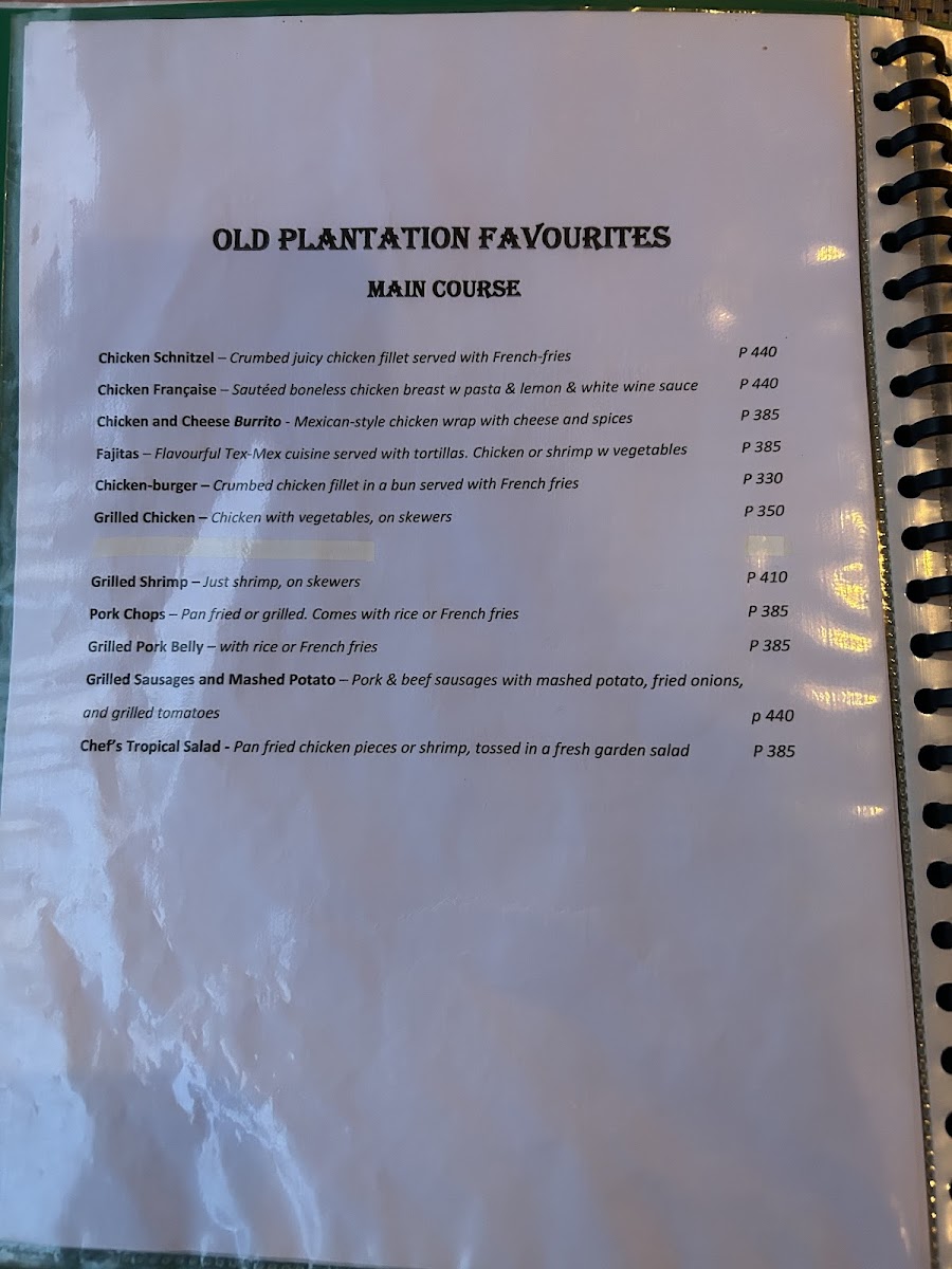 The old plantation Menu